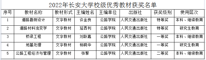 近日,学校发布了《关于获评2022年新葡萄8883官网AMG官网优秀教及拟推荐参评2022年陕西高等教育优秀教材名单的公示》,新葡萄官网5部教材获特等奖2项、一等奖2项、二等奖1项,其中获得特等奖和一等奖的4部教材被推荐参评陕西高等教育优秀教材。