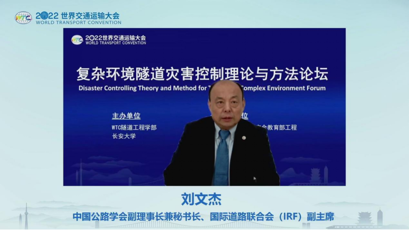 刘文杰代表2022世界交通运输大会执委会向本次论坛的召开表示热烈的祝贺,向出席论坛的专家学者表示诚挚的感谢和欢迎。他指出,2017年第一届世界交通运输大会创办以来,国内外隧道方面的技术、发展和成就成为每年WTC非常重要的亮点和焦点。隧道工程学部组织承办了历届隧道工程技术论坛,在国内外隧道工程领域形成了较大的影响力和凝聚力。当前隧道工程的建设运营面临更加艰险的地质条件和环境,对隧道工程灾害控制理论和技术提出了新要求和新挑战,相信本次论坛将为推动复杂环境隧道工程灾害控制理论和技术进步作出贡献。他期待,各位与会专家给予WTC更多支持,为我国公路交通的科技创新,尤其是为隧道工程学科的发展出谋划策。