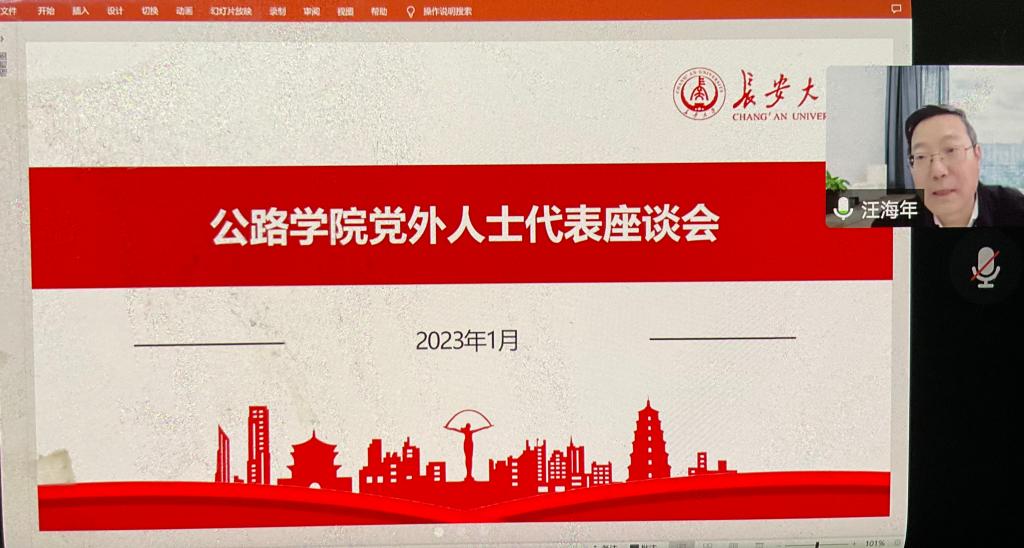 座谈会上,陈建勋向党外人士代表通报了学院2022年重要工作开展情况和取得的成果。在教育部第五轮学科评估中,学院牵头建设的“交通运输工程”学科取得突破,他指出,此次“交通运输工程”学科建设所取得的丰硕成果,是在学校党政的正确领导下,全校师生凝心聚力、踔厉奋发所取得的,作为牵头建设学院,新葡萄8883官网AMG官网党外人士广泛参与,也为学校学科建设起到了凝聚人心、会聚力量的重要作用。学院2022年度高层次人才培育成效显著,教育教学改革成果丰硕,学生综合表现突出,科研硬实力进一步提升,国际交流与合作亮点频出,学院发展扎实向前。他表示,过去的一年中,学院的良好发展离不开统一战线建言献策和民主监督,在新的一年,希望大家多建金玉良言,为学院奋进“双一流”和事业发展贡献智慧。