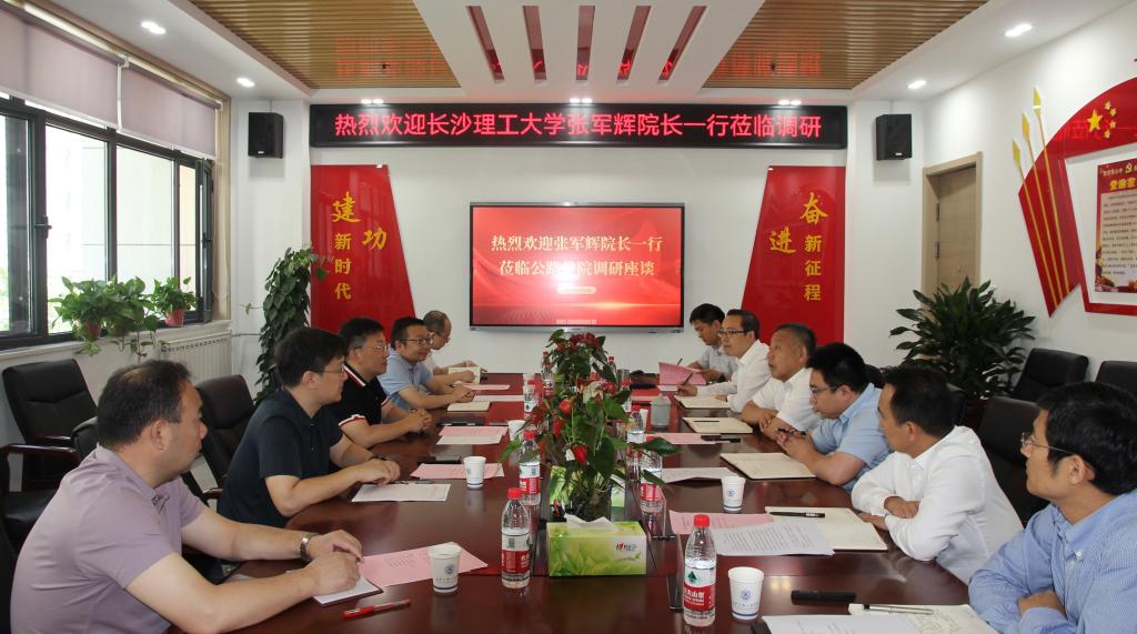 长沙理工大学交通运输工程学院副书记兼副院长涂道勇、副院长张锐、高英力、党委委员王正武,新葡萄8883官网AMG官网院副院长张久鹏、韩万水、院办主任王志坤参加座谈。