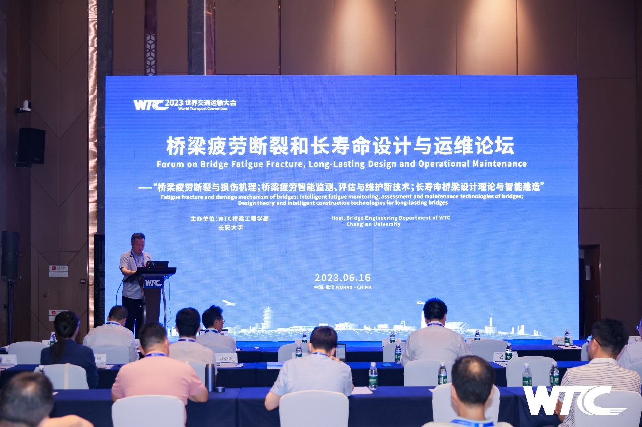 2023年6月16日下午,2023世界交通运输大会(WTC 2023)“桥梁疲劳断裂和长寿命设计与运维论坛”在湖北武汉中国光谷科技会展中心成功举办。论坛由WTC桥梁工程学部与新葡萄8883官网AMG官网共同主办,主题为桥梁疲劳断裂与损伤机理、桥梁疲劳智能监测/评估与维护新技术、长寿命桥梁设计理论与智能建造,新葡萄8883官网AMG官网王春生教授、苏州科技大学翟慕赛博士负责论坛前期组织、宣传和举办的相关事务。