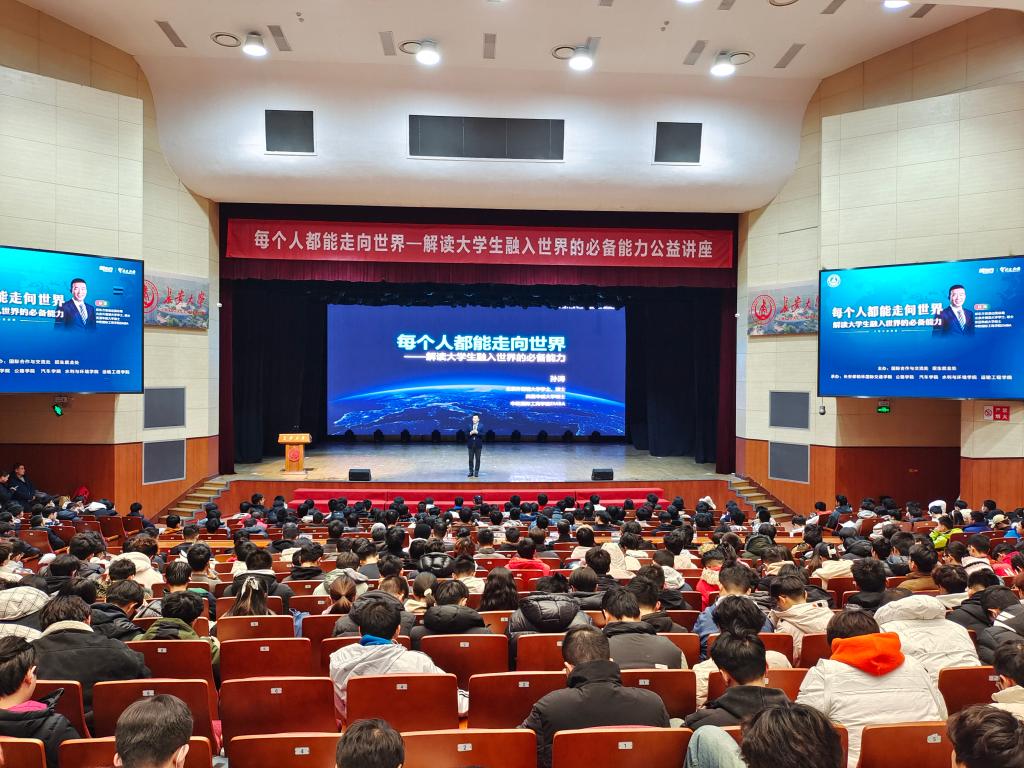 12月13日晚新东方教育科技集团助理副总裁、新东方前途出国总裁孙涛受邀来校作“每个人都能走向世界——解读大学生融入世界的必备能力”大型公益讲座。本次活动由学校国际合作与交流处、招生就业处主办,新葡萄8883官网AMG官网、长安都柏林国际交通学院、汽车学院、水利与环境学院、运输工程学院联合承办,来自各院(系)的1000余名学生在北校区长安文化艺术中心大礼堂参加讲座。