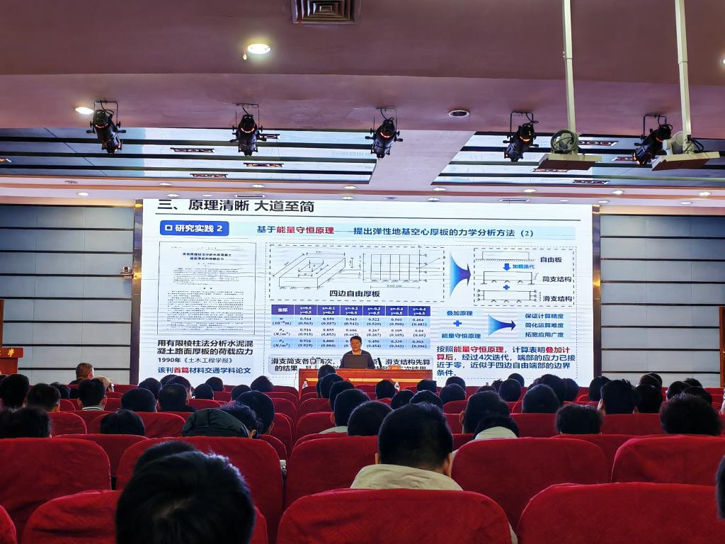 黄卫院士强调了数学在科学研究过程以及工程问题解决中的重要性,激励大家学好数学,将来运用数学相关知识有效突破问题瓶颈。以南京第二长江大桥为例,讲解了低碳长寿命环氧沥青路面结构设计体系研究等前沿内容。“科学研究最重要的是方向,只有方向正确、坚持前沿,才能得到有价值的成果”,告诫广大师生要深入学习前沿科学技术知识,探索突破瓶颈问题的有效方法。