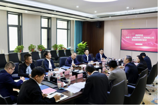 4月8日下午,中铁十二局集团第三工程有限公司副总经理兼总工程师翟建国一行6人来新葡萄8883官网AMG官网座谈交流。新葡萄8883官网AMG官网院长汪海年、党委书记张久鹏、党委副书记、副院长姚以亮、正处级组织员廖谦等参加座谈。会议由姚以亮主持。