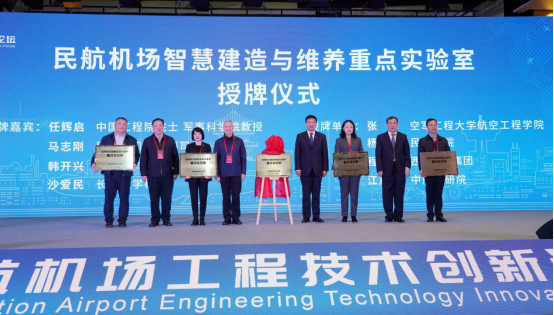 开幕式上,任辉启、马志刚、韩开兴和沙爱民共同为新葡萄8883官网AMG官网牵头组建的“民航机场智慧建造与维养重点实验室”揭牌,为共建单位代表授牌。