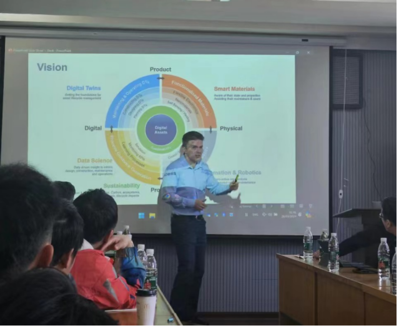 报告期间,Brilakis教授与在场师生针对在人工智能赋能下公路交通领域的发展、科研成长经历、研究选题的发展等相关问题进行了交流,并强调了科研创新的重要性。最后,Brilakis教授强调了数字孪生的应用价值以及在中国的发展潜力。本次报告加深了我校师生对数字孪生技术的认识,有力地促进了新葡萄8883官网AMG官网与国际顶尖高校之间的交流。