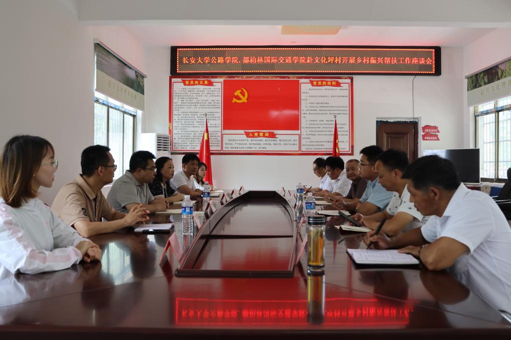 随后,双方在文化坪村党群活动中心开展座谈。黄青向新葡萄8883官网AMG官网和长安都柏林国际交通学院多年来对赵川镇的帮扶与支持表示衷心感谢,就赵川镇目前的建设发展向与会人员进行介绍。黄开峰回顾了长期以来两院对文化坪村的帮扶措施,介绍了村里近年来的显著发展变化,就村中特色产业下一步发展、中药材种植、生态旅游业开发等方面同与会人员交流探讨。