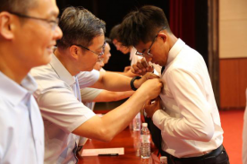 随后,学院班子成员为新生代表佩戴校徽,正式开启新一代公路人逐梦之旅。在温馨氛围的烘托下,全体同学齐声高唱《歌唱祖国》,为新中国七十五年华诞送上美好祝福。