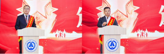 沙爱民和周伟为“王秉纲青年科技英才奖(工程技术类)”颁奖