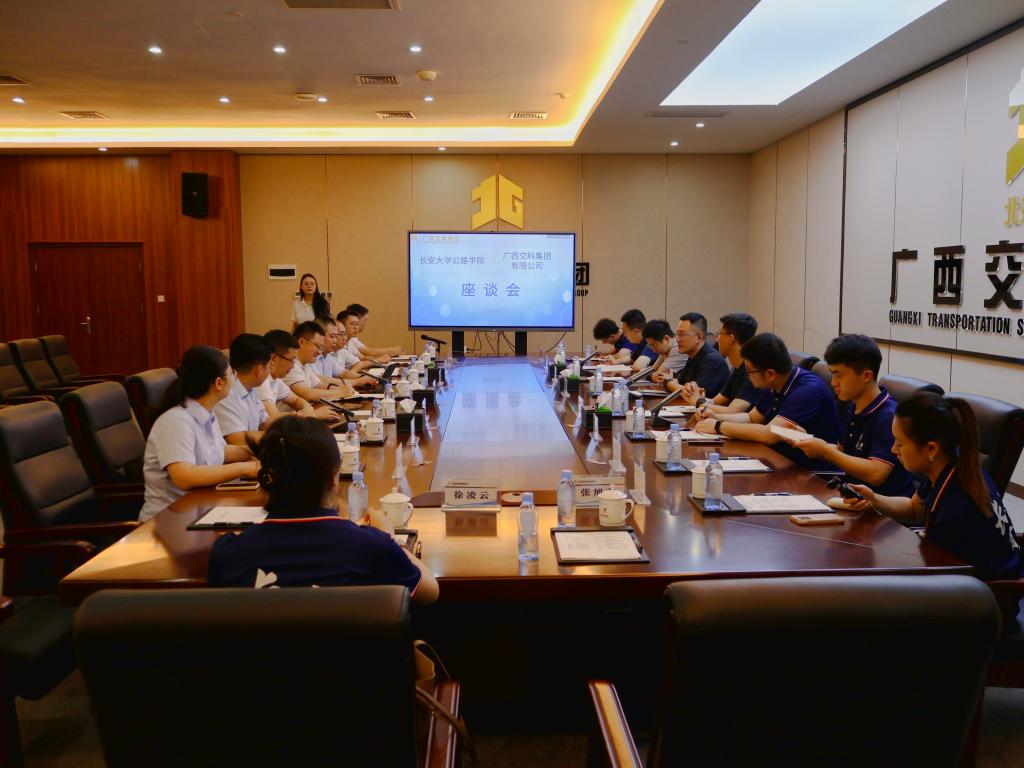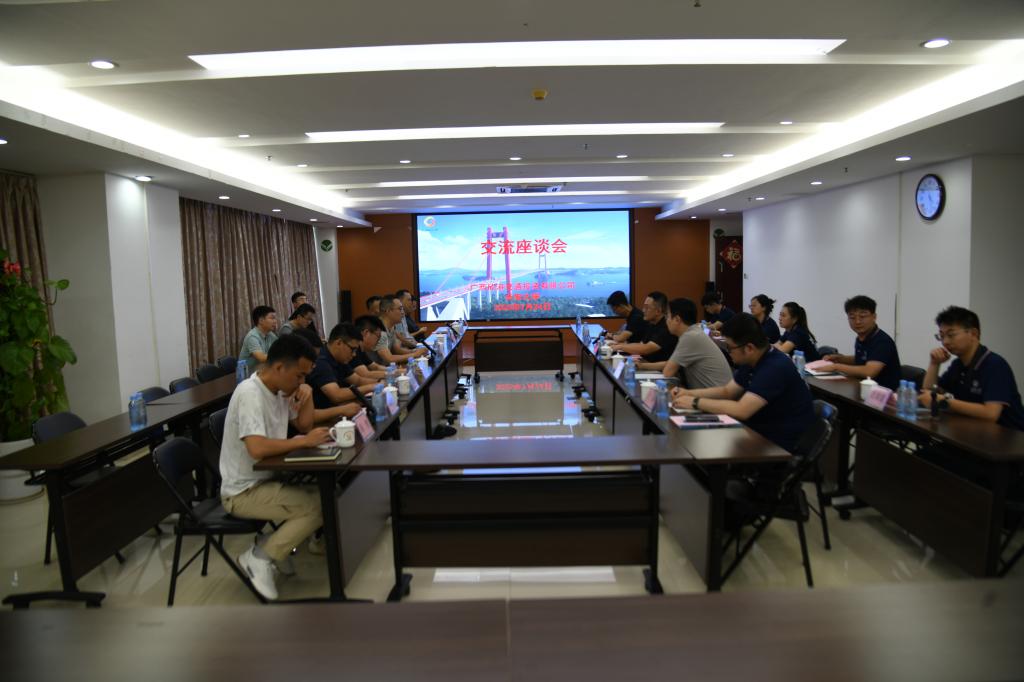7月23日下午,贾历波一行来到广西交通投资集团有限公司(下简称广西交投),与广西交投副总工程师、总工办主任秦育彬、人力资源部部长叶娟、投资发展部副部长刘佳、桂湘公司常务副总经理刘东以及相关业务经理座谈交流。
