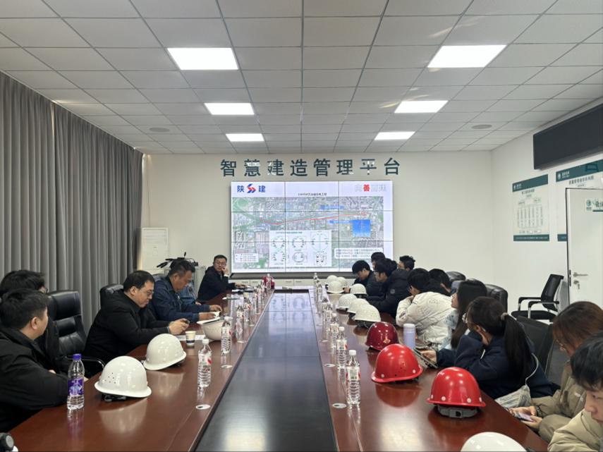 实习第二站,师生们走进陕西建工集团西安万达330kV输变电工程项目经理部,开启跨界实践探索。项目负责人结合工程展板与规划图纸,详细介绍了项目的建设背景、整体概况、核心技术亮点以及在区域电网架构中的重要战略地位。针对工程选址时的地质勘察、设计阶段的环保考量、施工过程中面临的周边环境协调等难点问题,负责人详细拆解了项目团队的应对思路与创新解决方案,让同学们对基础设施工程的全流程管控有了系统性的认知。