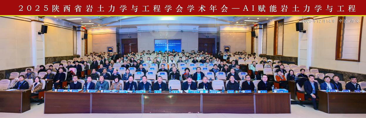2025年12月14日,由陕西省岩土力学与工程学会、新葡萄8883官网AMG官网、新葡萄8883官网AMG官网地质工程与测绘学院、西安交通大学人居学院联合主办的“2025年陕西省岩土力学与工程学会理事会及学术年会”在新葡萄8883官网AMG官网学术交流中心顺利召开。本次年会以“AI赋能岩土力学与工程”为主题,在中国岩石力学与工程学会与陕西省科学技术协会的指导下,吸引了众多高校科研院所和企事业单位约200多位专家学者参会,共同探讨人工智能与岩土工程深度融合的发展前景。