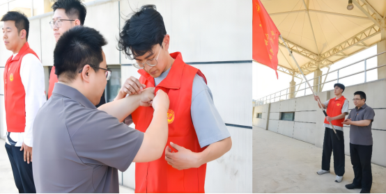 运动会党员志愿服务队是新葡萄官网运动会工作中的中坚力量,在历届运动会中发挥了积极作用。动员大会上,学院领导为党员志愿服务队授旗,为党员志愿者代表佩戴党徽。党员志愿服务队表示,将在运动会中为同学们提供有力的帮助,服务备战参赛一线,发挥党员的模范先锋作用,做学院运动会最坚实的后盾。