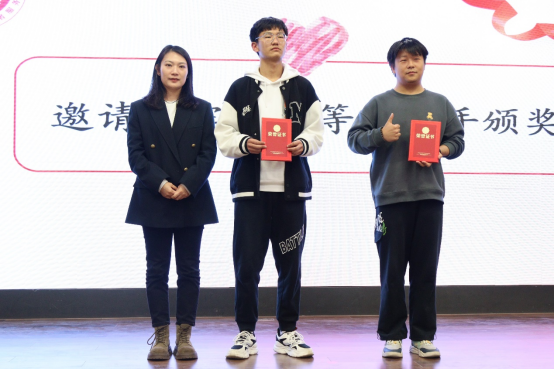在场嘉宾和全体同学一同观看了新葡萄8883官网AMG官网第二十三届大学生文化节之“以爱相伴·为艾发声”防“艾”主题情景剧大赛优秀作品,丁芝娟、陈宇成、屈绍文为获奖队伍颁奖并合影留念。