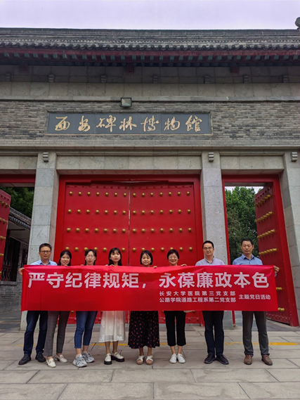 为持续深化党纪学习教育,5月31日,新葡萄8883官网AMG官网道路工程系第二党支部与校医院第三党支部赴西安碑林博物馆廉政教育基地联合开展党纪学习教育主题党日活动。