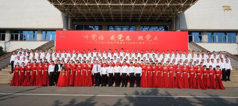 全院近200名教师在雁博园进行了多次精心排练,老师们以铿锵激昂的歌声和饱满真挚的热情,抒发出沐浴在党的温暖阳光下,公路人不惧万水千山、重峦叠嶂的艰难,誓为祖国建成交通强国奉献力量的意志,以及为祖国培养一代代公路接班人的师者情怀。